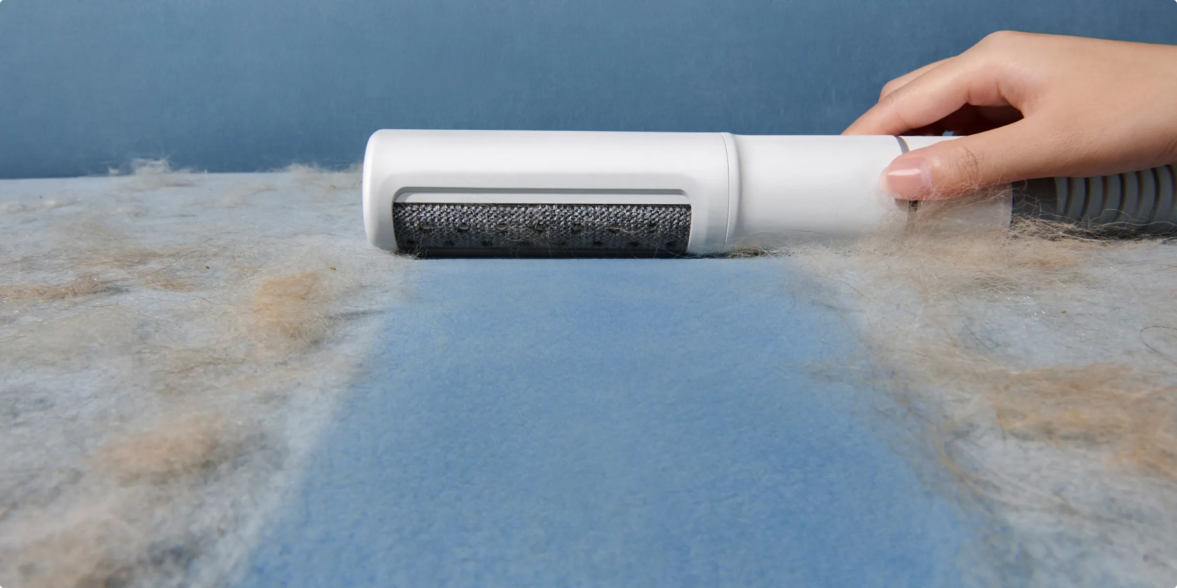 Elimina fácilmente el pelo de mascotas de las superficies de tela mediante principios electroestáticos.