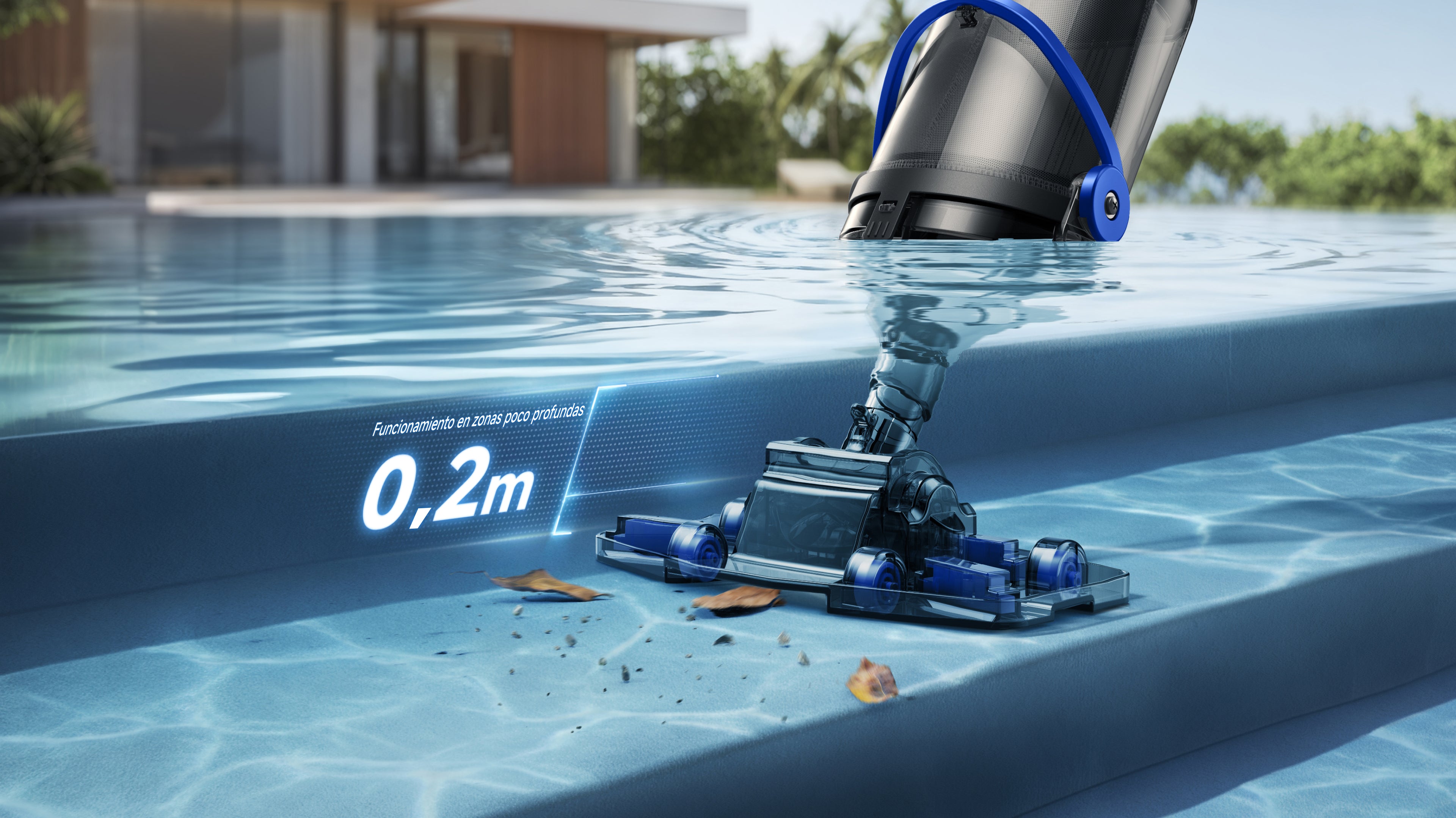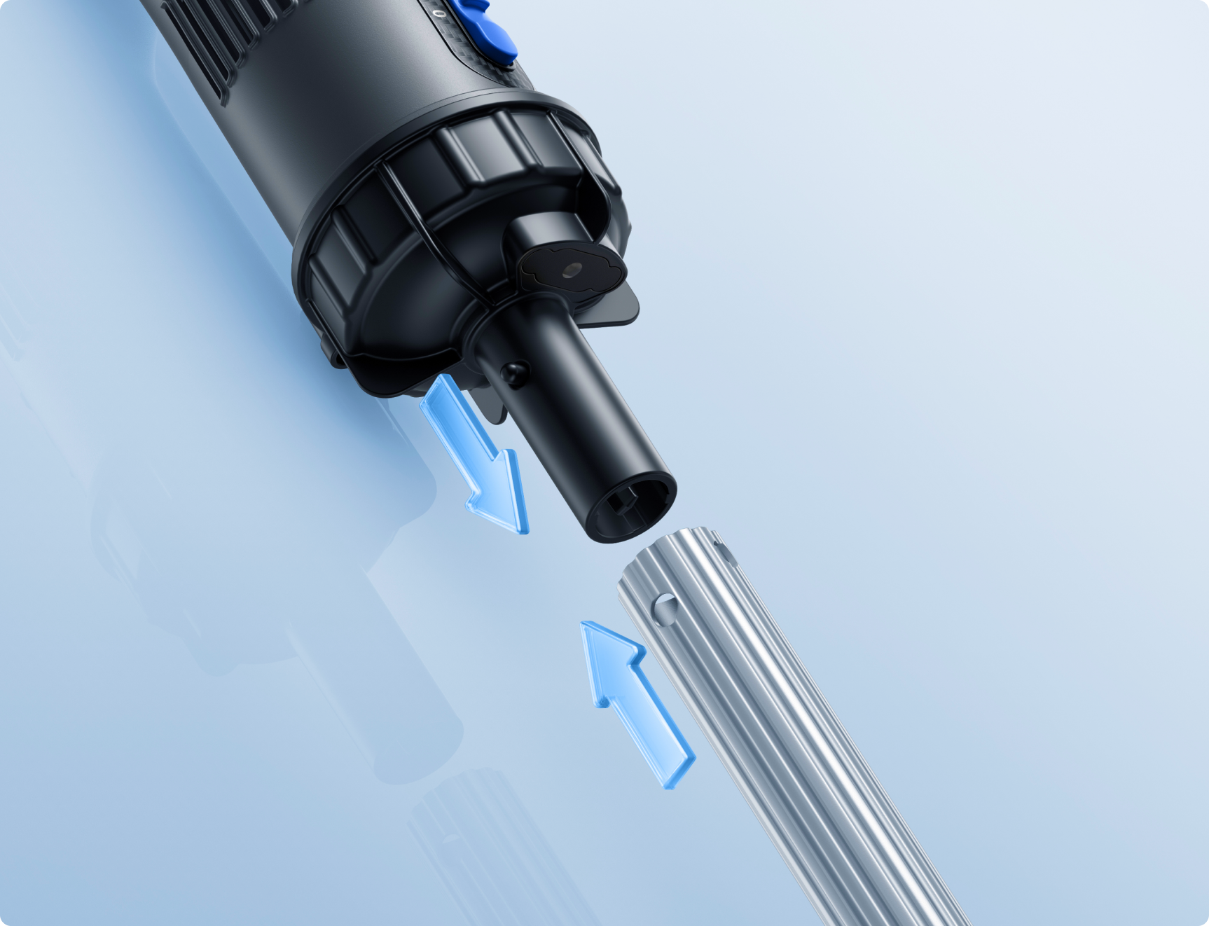 *2,5 m: La longitud total de la unidad principal más la barra extensible es de 2,5 metros. Según datos de nuestro laboratorio interno. El rendimiento real puede variar.