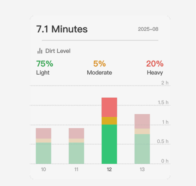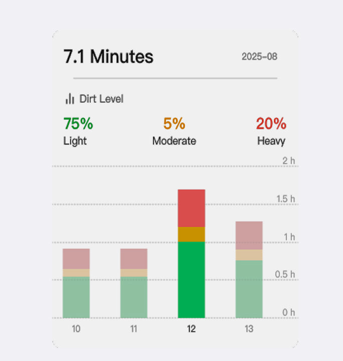 Registra la duración, el modo y el uso de cada sesión de limpieza para verlos y analizarlos fácilmente.
