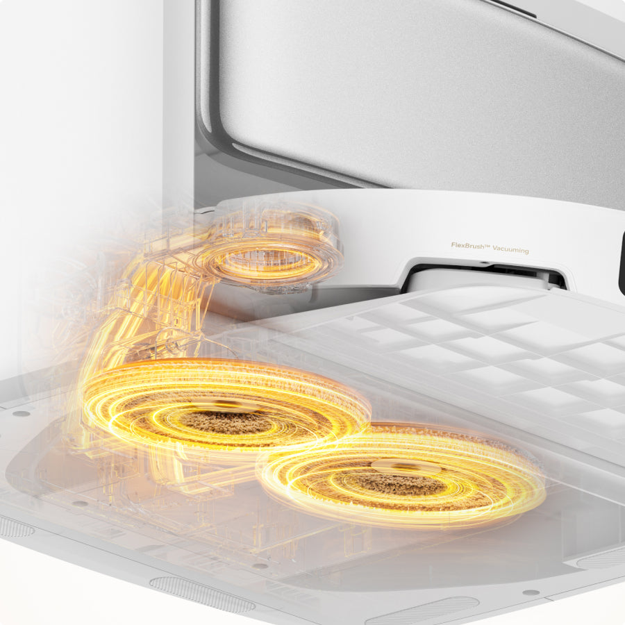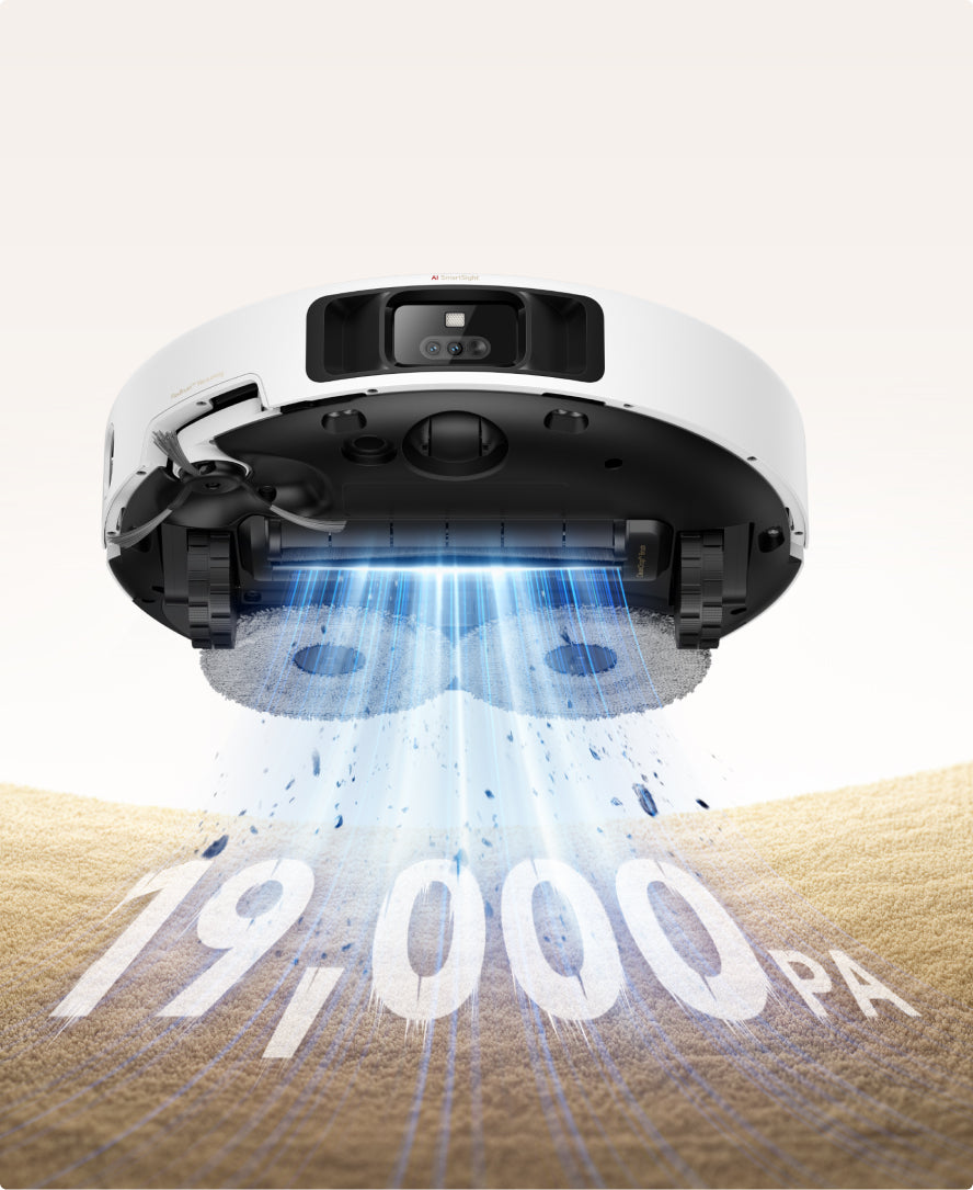 La potencia de succión de 19 000 Pa* del P50 Ultra permite recoger de forma exhaustiva el polvo, el pelo de mascotas y otros residuos pequeños o grandes en los bordes, cerca de los rodapiés y debajo de los muebles con poca separación del suelo.