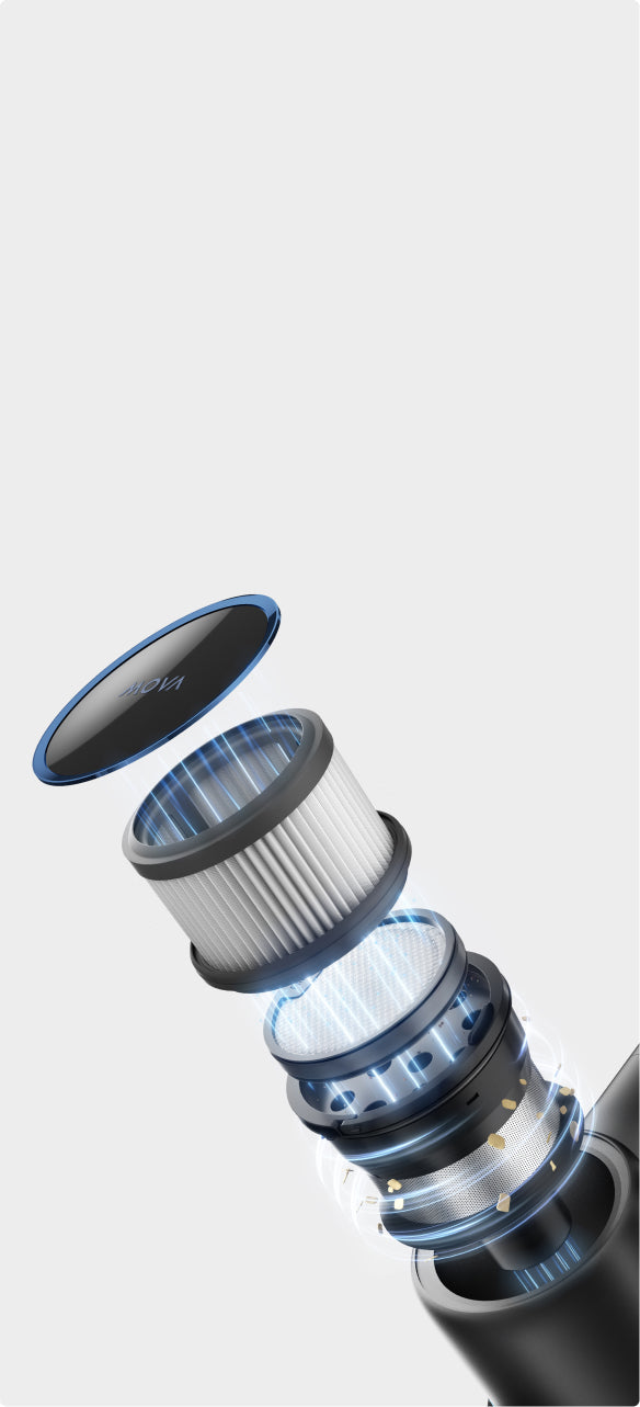 *90 min: según pruebas realizadas en el modo Eco con herramienta combinada ancha. El tiempo de uso puede variar. Ten en cuenta que solo se incluye una batería en el embalaje suministrado. Para baterías adicionales, adquiérelas en las tiendas de Mova.