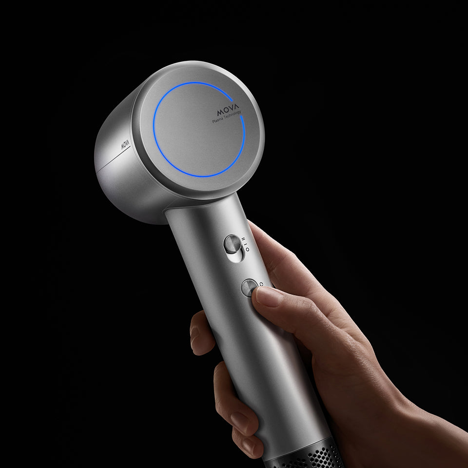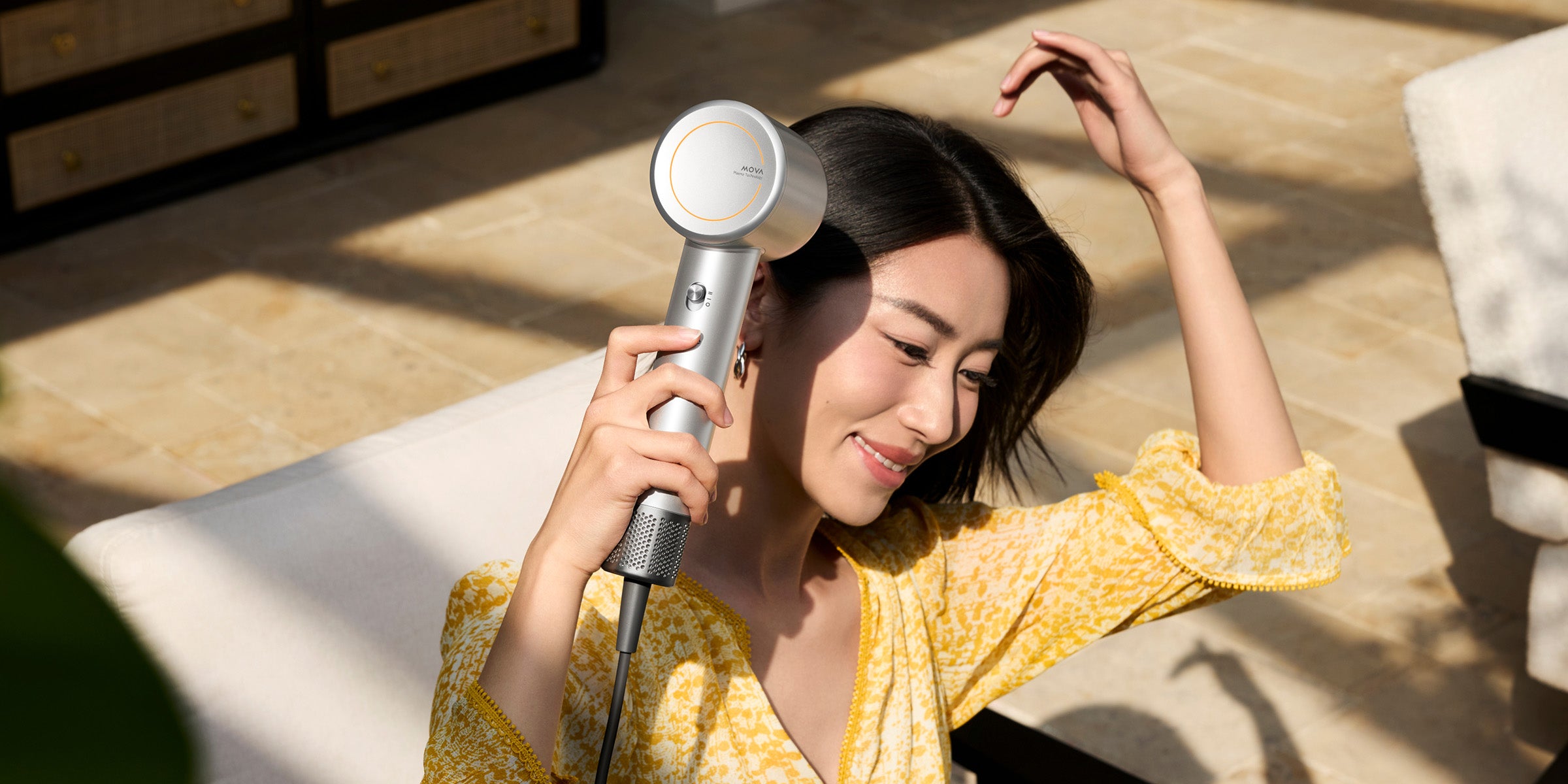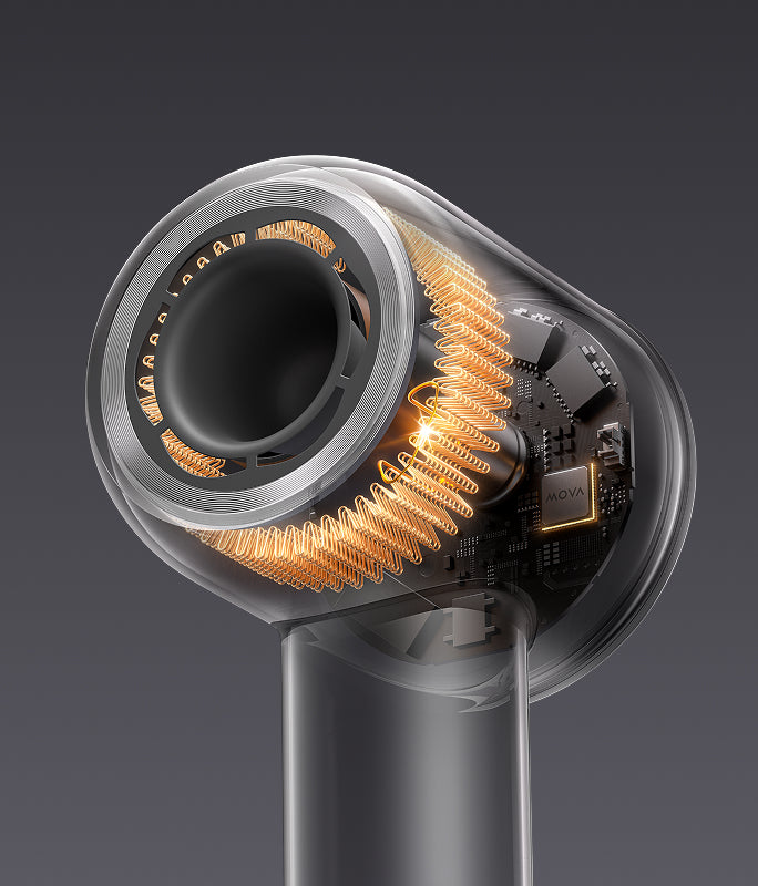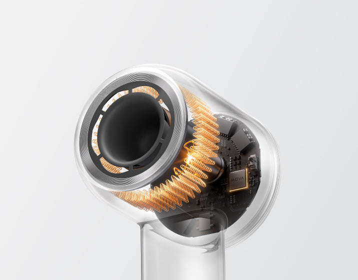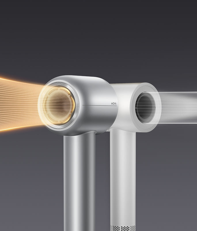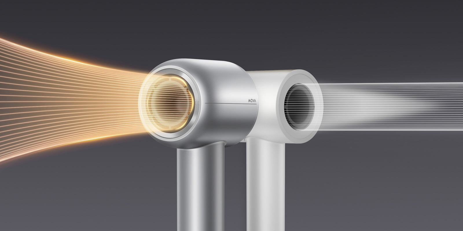 Shine 10 también cuenta con un potente motor de alta velocidad. Su motor sin escobillas de 110.000 rpm, combinado con las salidas de aire en forma de flor, proporciona una alta velocidad y un flujo de aire uniforme, capaz de soplar el cabello húmedo y pesado y llegar a las raíces. El potente flujo de aire a presión elimina rápidamente la humedad de la superficie del cuero cabelludo.