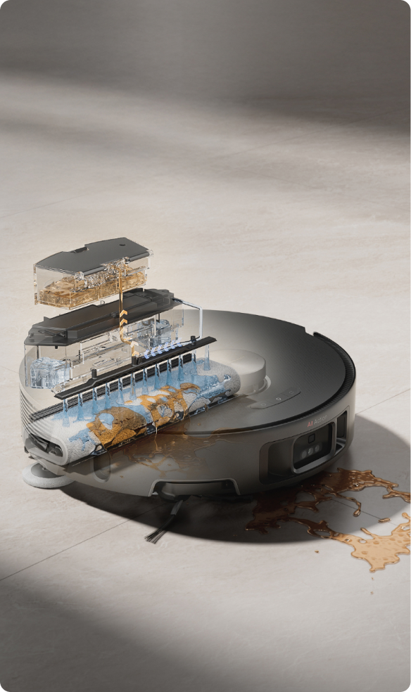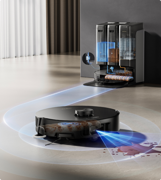 Equipado con LiDAR autónomo de grado de conducción y visión binocular por IA, navega fácilmente por entornos complejos de la casa, planificando rutas, esquivando obstáculos y moviéndose sin problemas. Puede reconocer más de 160 tipos de obstáculos*, incluida la detección del 100% de los cables, para una limpieza segura y eficiente.