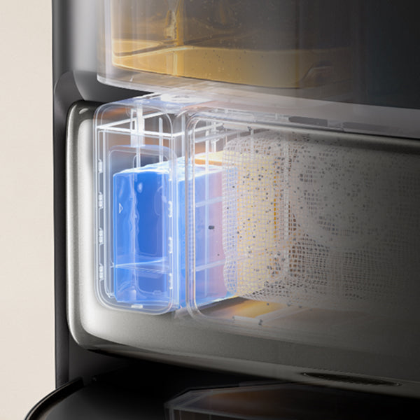 Innovador diseño con dos recipientes para solución de limpieza: uno para la solución de limpieza general y otro para el eliminador de olores de mascotas de N-morfolina de soja, que desodoriza los olores de las mascotas en su origen, no sólo los enmascara. Elige el modo y la solución de limpieza que prefieras a través de la aplicación de limpieza.