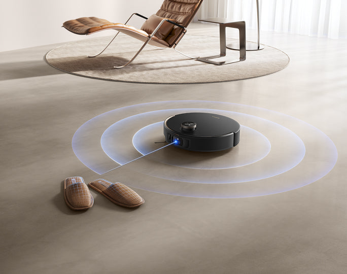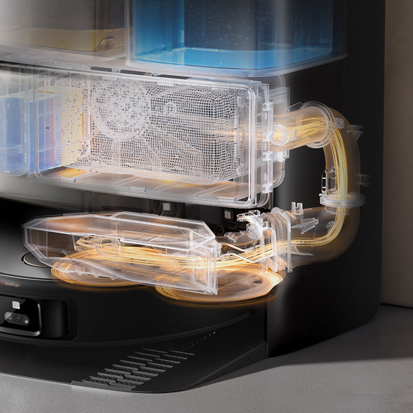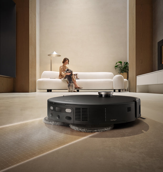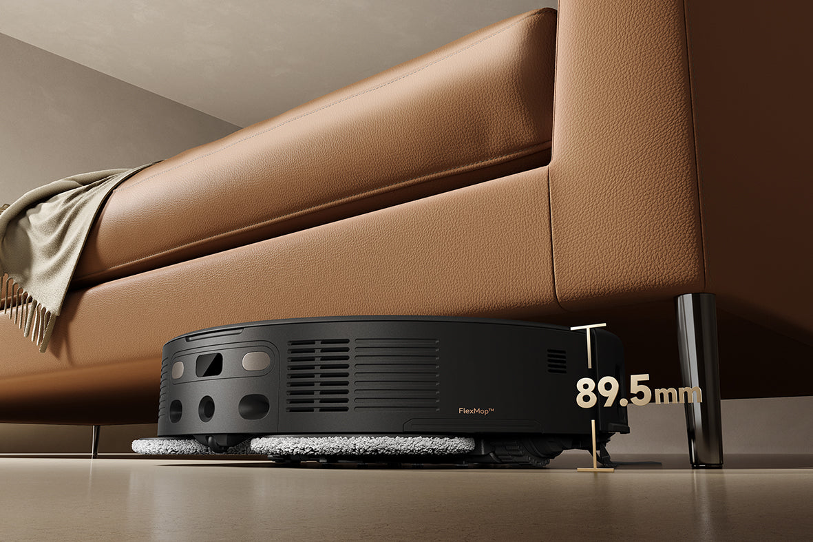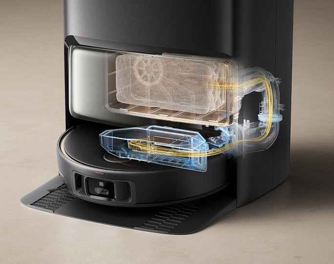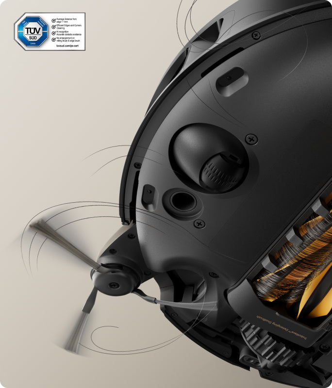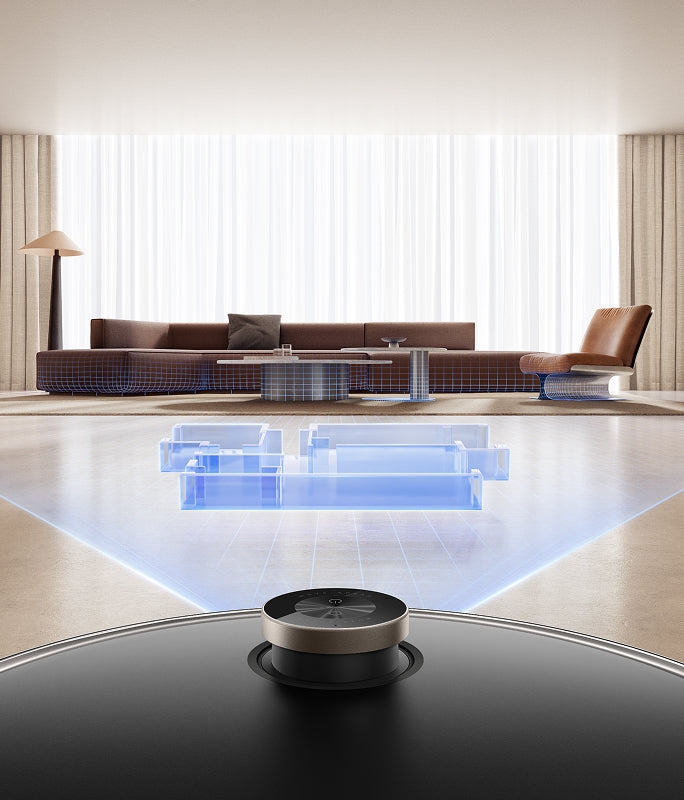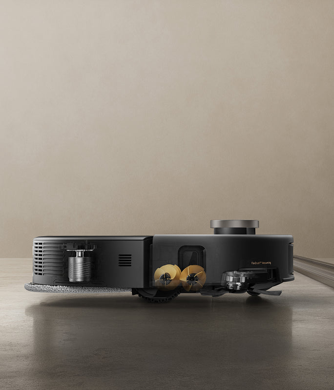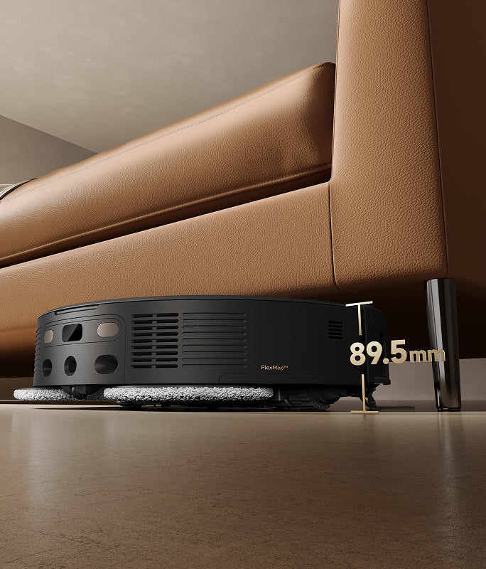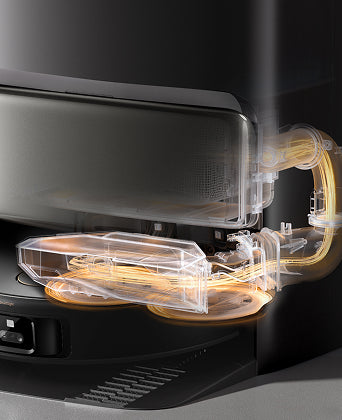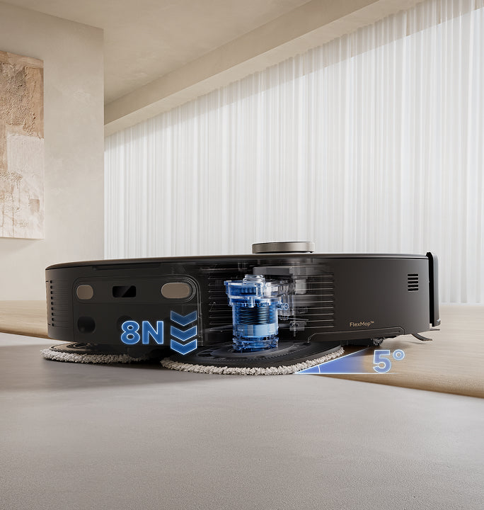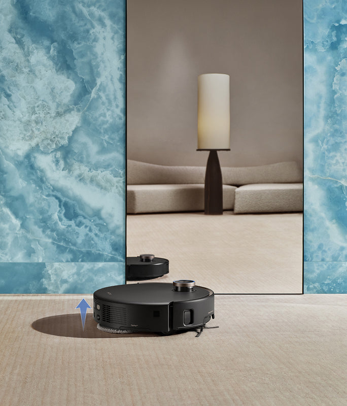 El sistema StepMaster™ cuenta con patas retráctiles robóticas que pueden levantar el chasis, lo que le permite cruzar fácilmente escalones, umbrales, rieles de puertas, patas de muebles en forma de U y pequeños obstáculos de hasta 6 cm* de altura. Navega por entornos domésticos complejos con facilidad para limpiar a fondo y regresar sin esfuerzo.