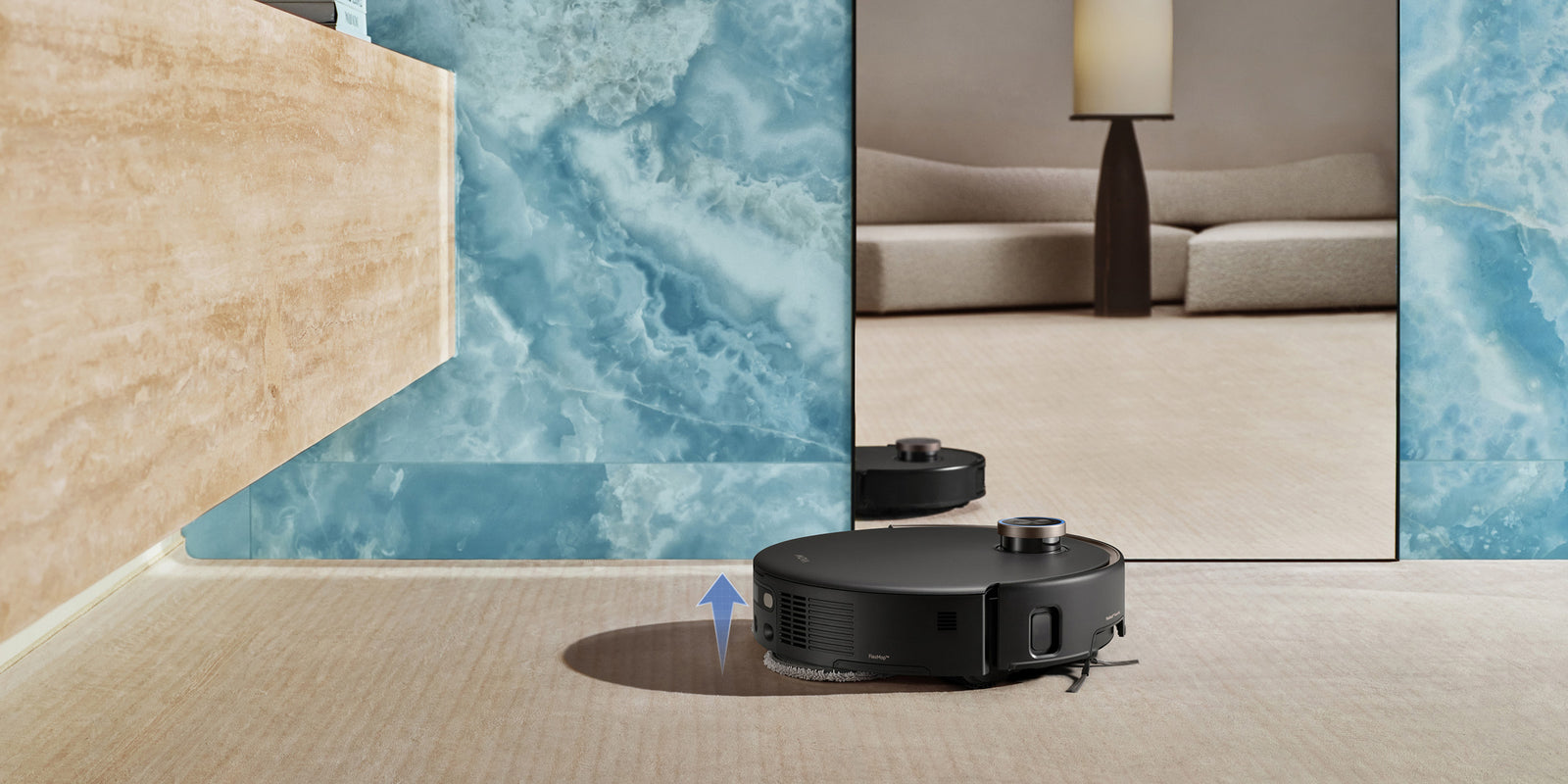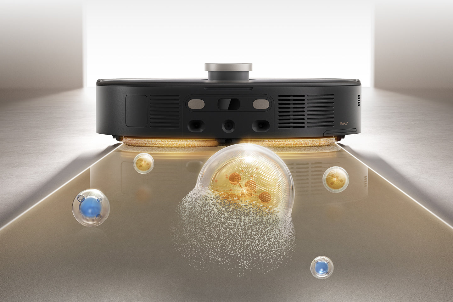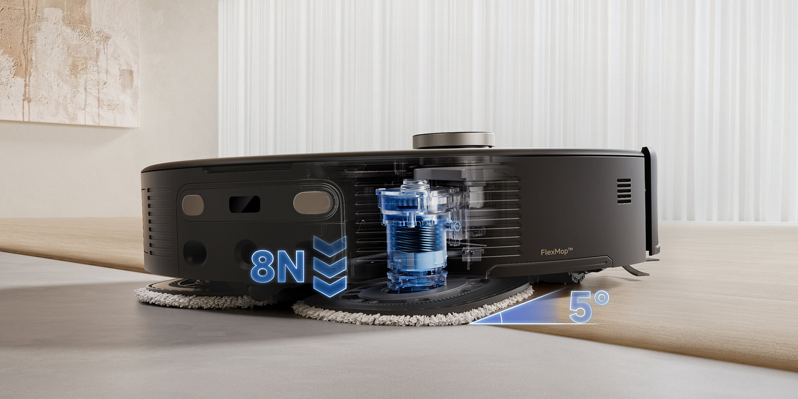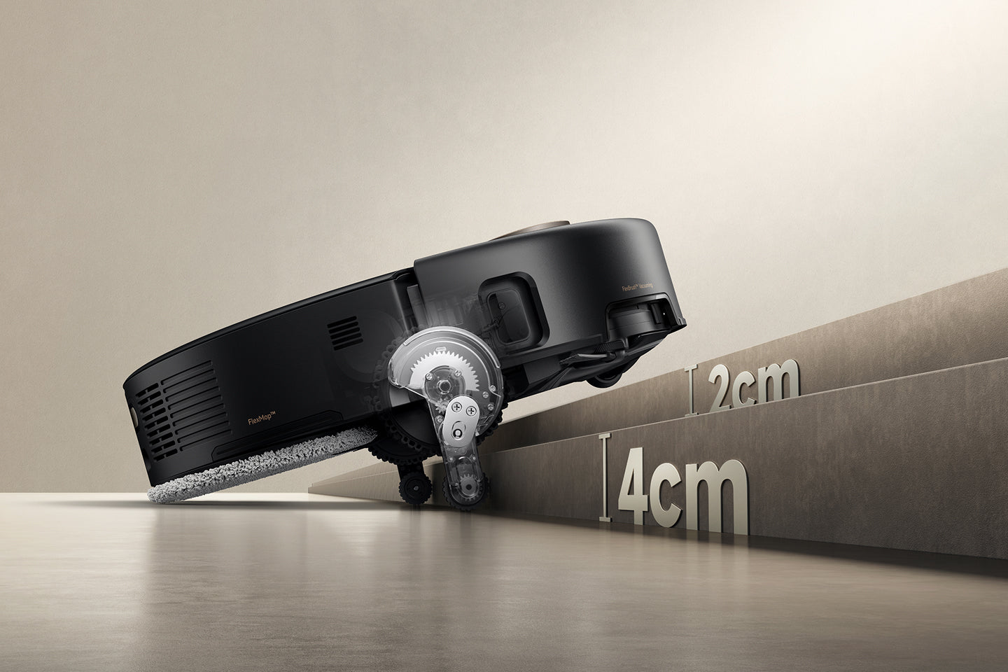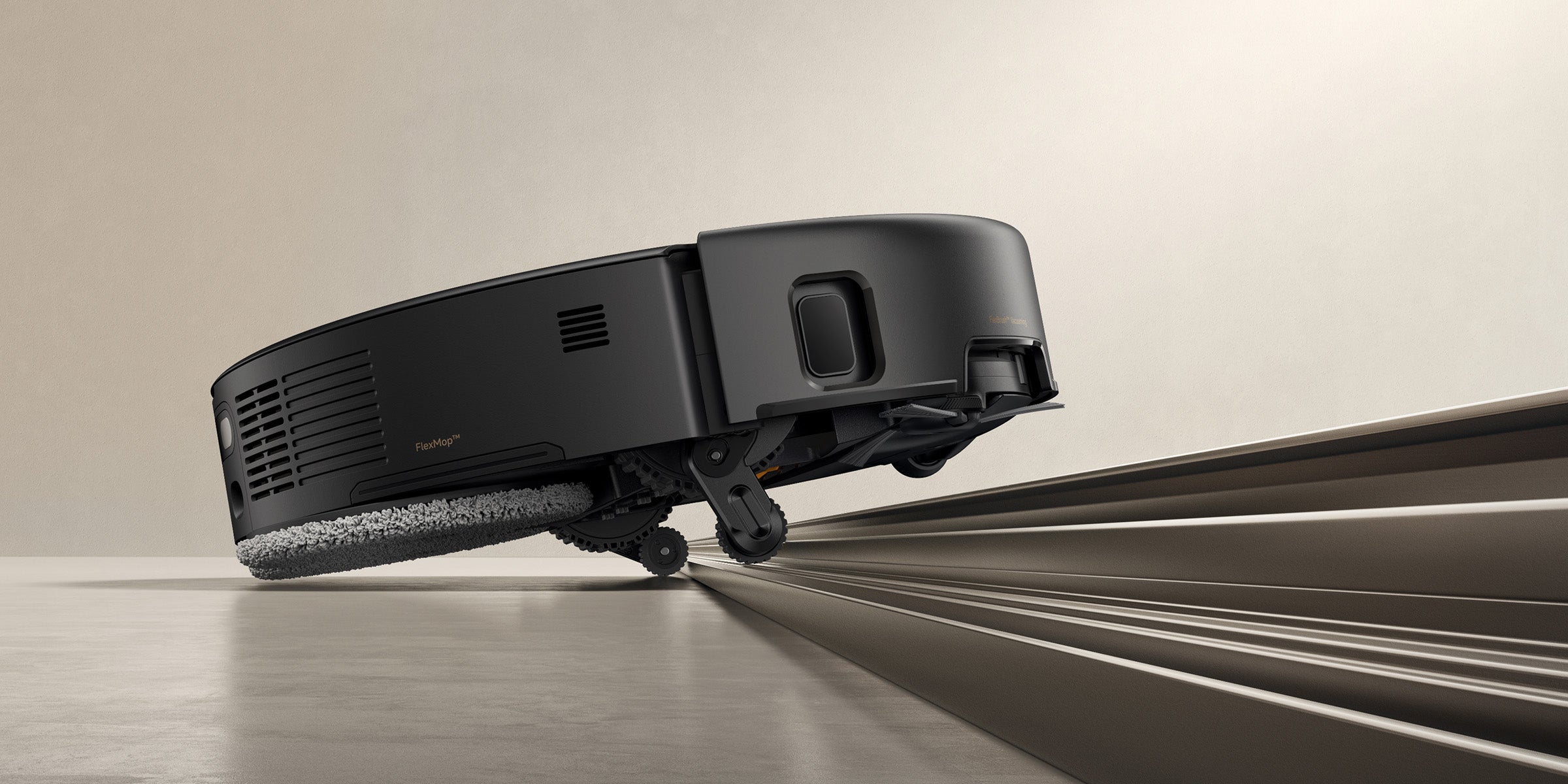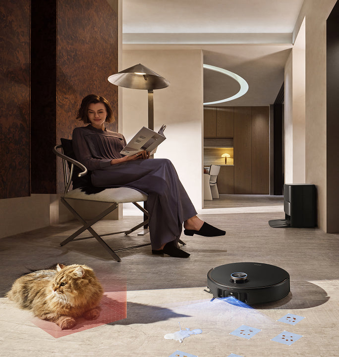 El sistema StepMaster™ cuenta con patas retráctiles robóticas que pueden levantar el chasis, lo que le permite cruzar fácilmente escalones, umbrales, rieles de puertas, patas de muebles en forma de U y pequeños obstáculos de hasta 6 cm* de altura. Navega por entornos domésticos complejos con facilidad para limpiar a fondo y regresar sin esfuerzo.