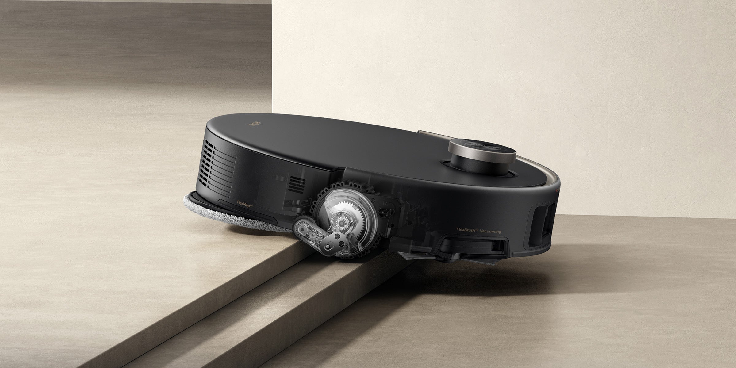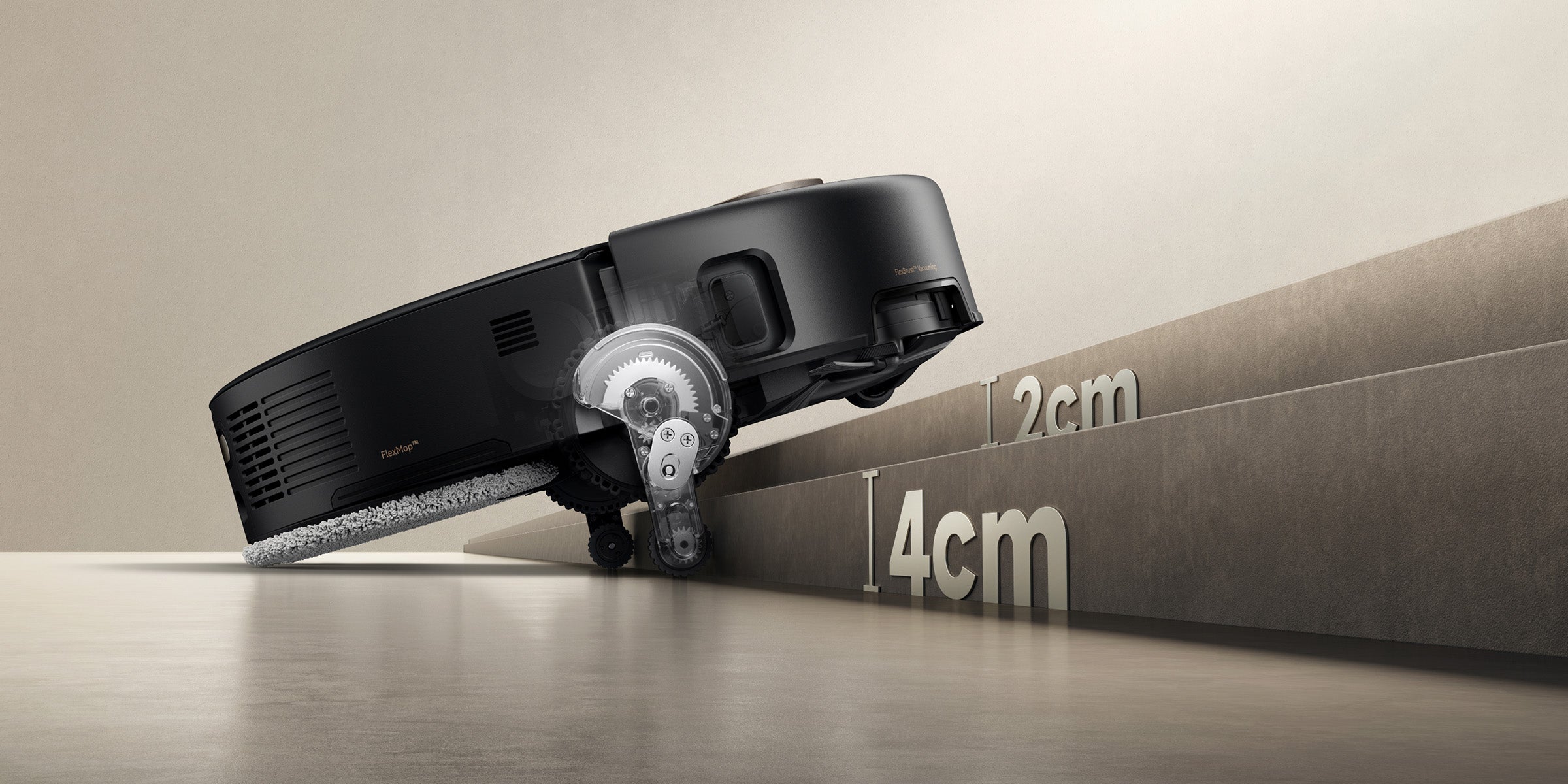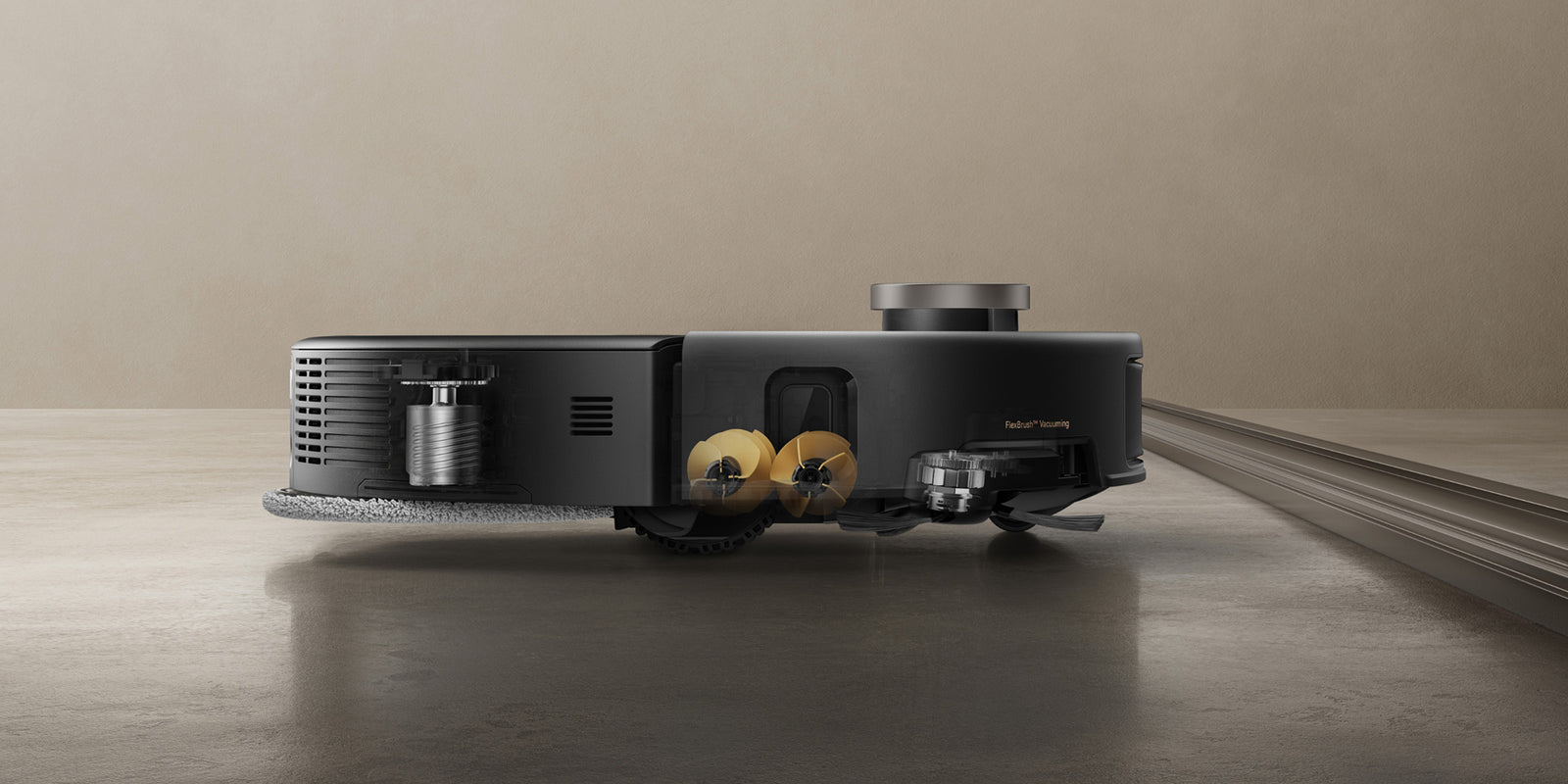Además, al cruzar umbrales, el cepillo principal, el cepillo lateral y la mopa se elevan para facilitar el paso.