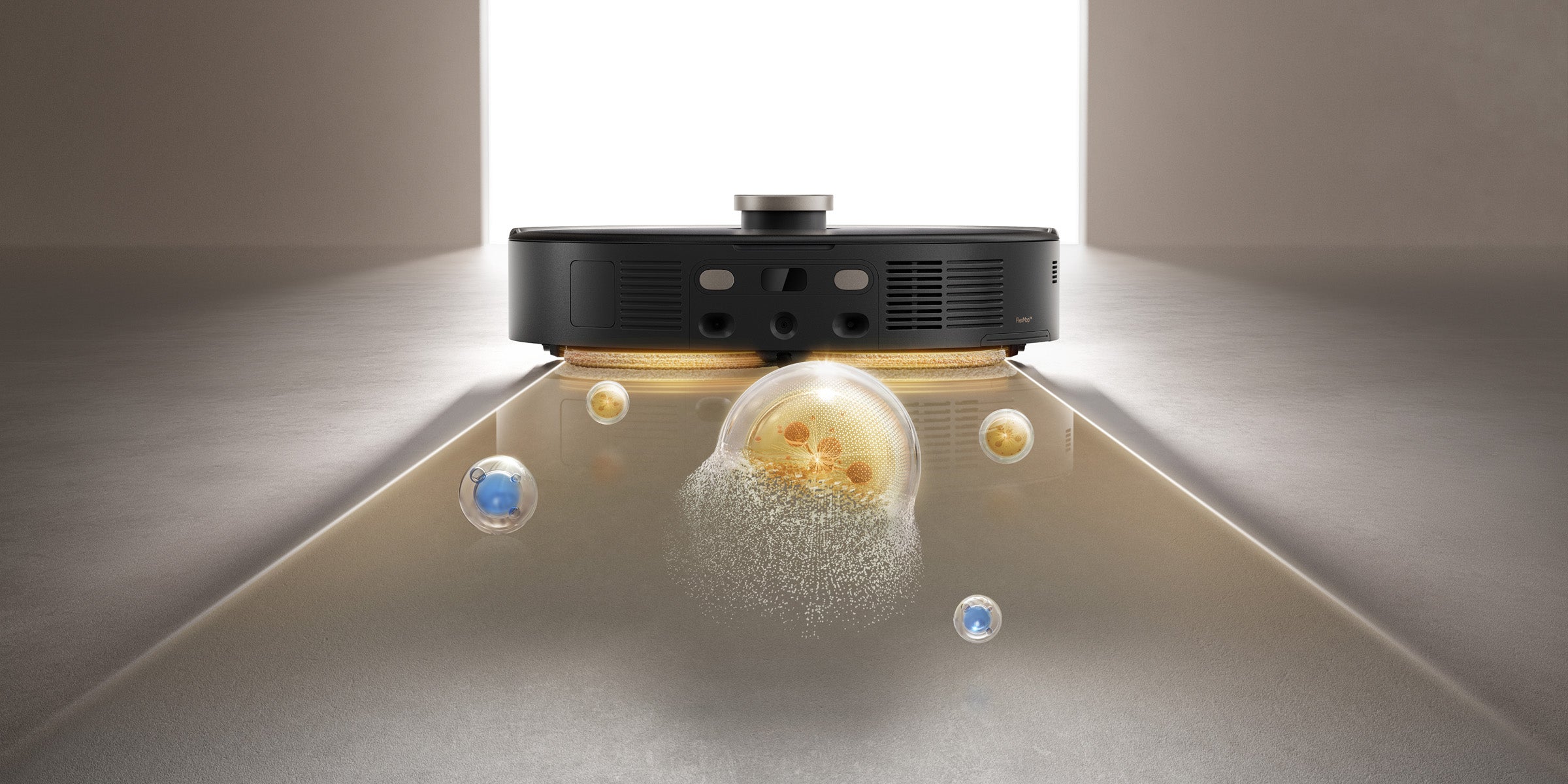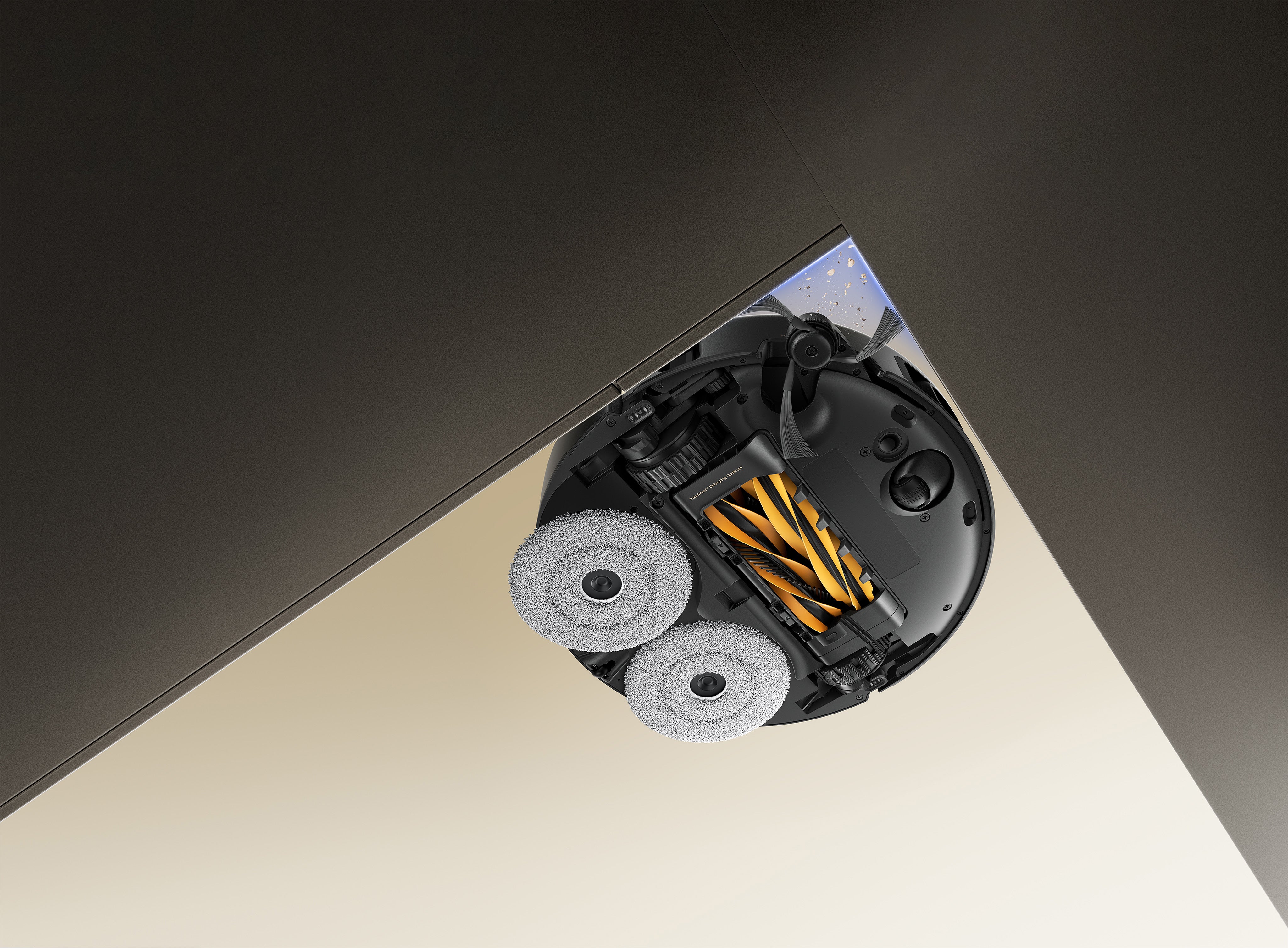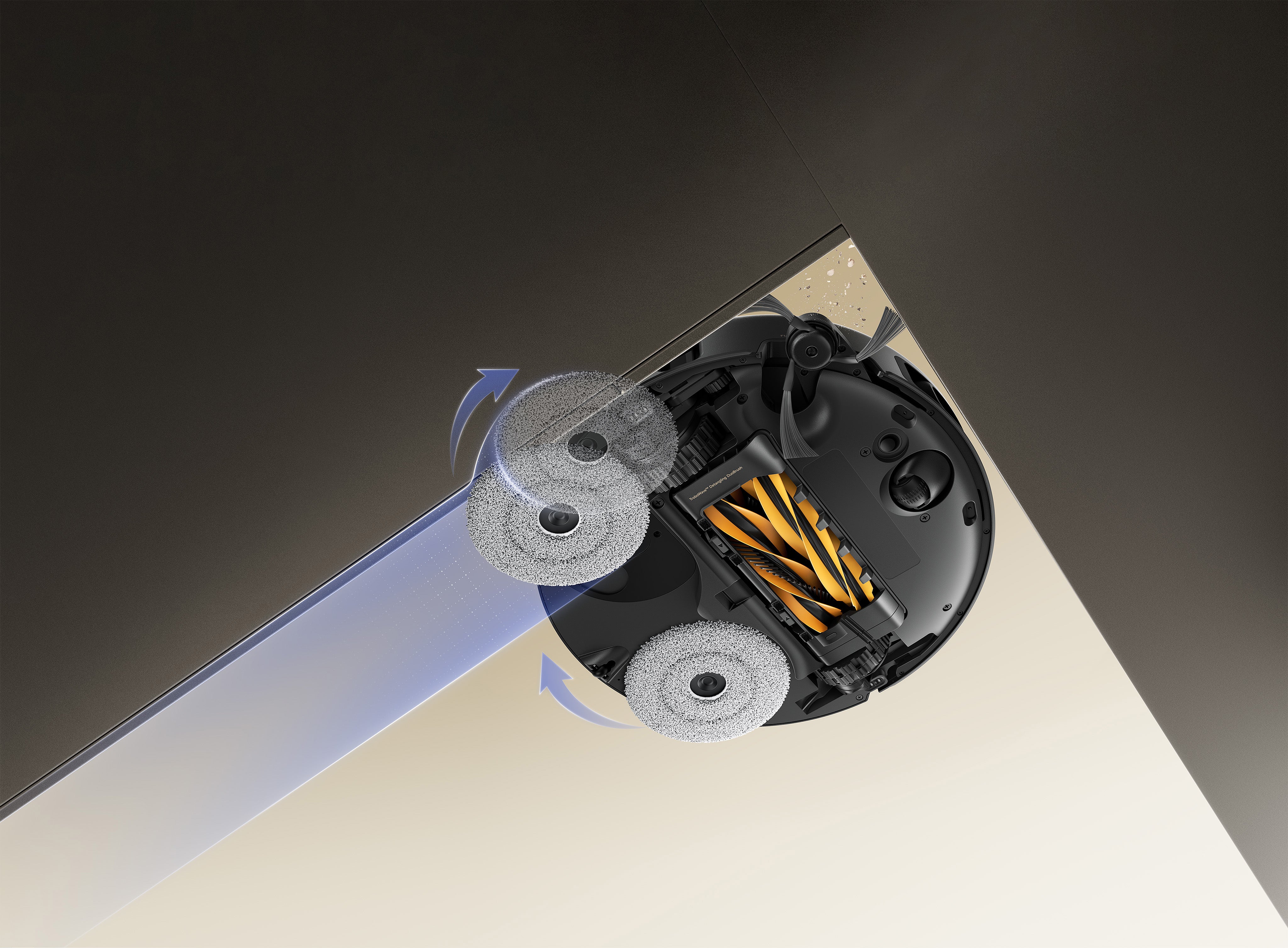 Además, al cruzar umbrales, el cepillo principal, el cepillo lateral y la mopa se elevan para facilitar el paso.