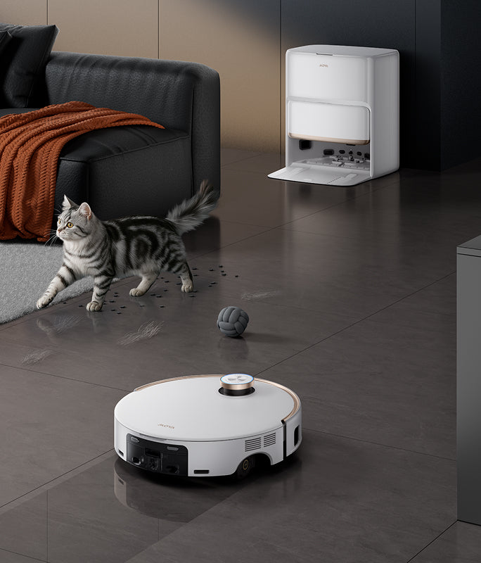 Disfruta de la comodidad que te ofrece una estación base todo en uno, diseñada para simplificar tu rutina de limpieza con recarga, vaciado, lavado y carga automáticos para ayudarte a lograr un mantenimiento en el que no tienes que intervenir.